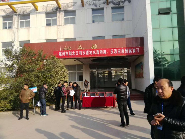 第二阶段是水源地水质污染演练,我公司水源地突发水源水浊度升高时间,值班人员第一时间上报给公司领导,同时联系水质检测中心和市环保局,快速处置突发事件,立即关闭闸门,把水源水与市政管道供水隔离开来,防止进入居民家庭中。