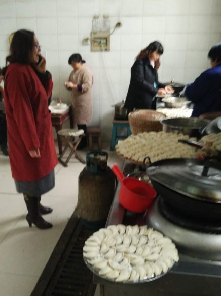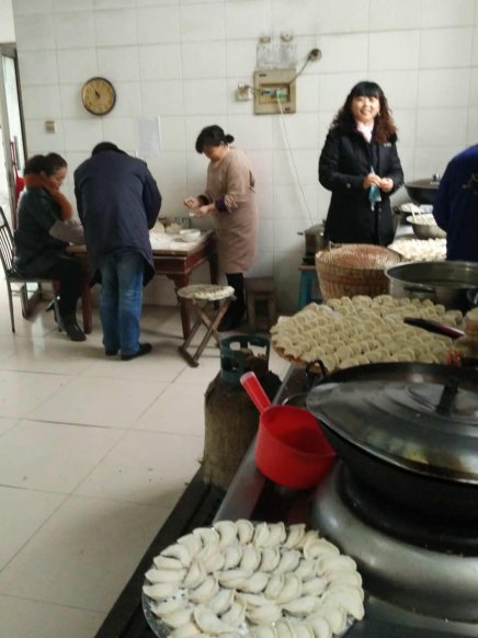 今天一大早办公室就安排食堂准备包饺子,上午11点半食堂刚调好饺子馅,各办公室人员在做好自己工作后,不约而同的来到食堂帮厨包饺子。有和面、有擀皮的包的。场面有条不紊的进行着,不到一个小时就包好了。