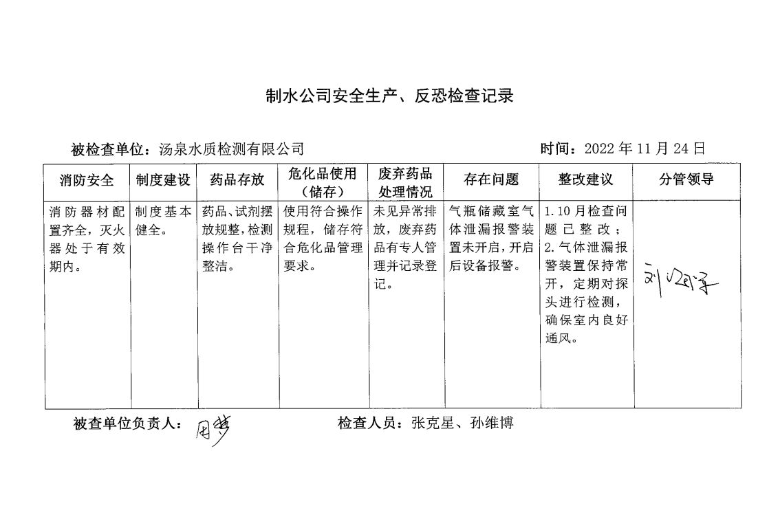 汤泉检测中心2022年11月安全生产检查记录