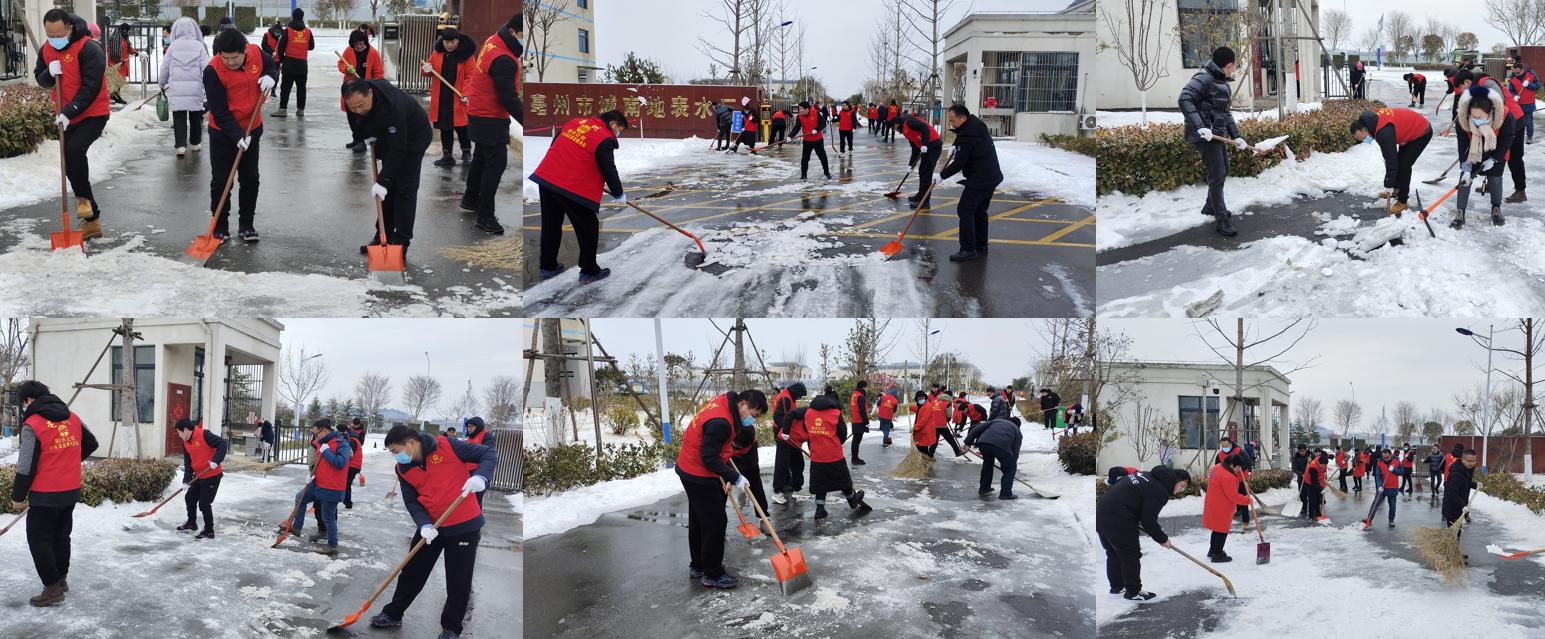 清理道路积冰,保障制水生产。亳州市制水公司小水滴志愿者服务队以雪为令、以“动”制“冻”,迅速组织志愿者清理单体、道路等重要部位积冰,消除安全隐患,保障厂区道路通畅,确保制水生产安全进行,满足全市人民用水需求。