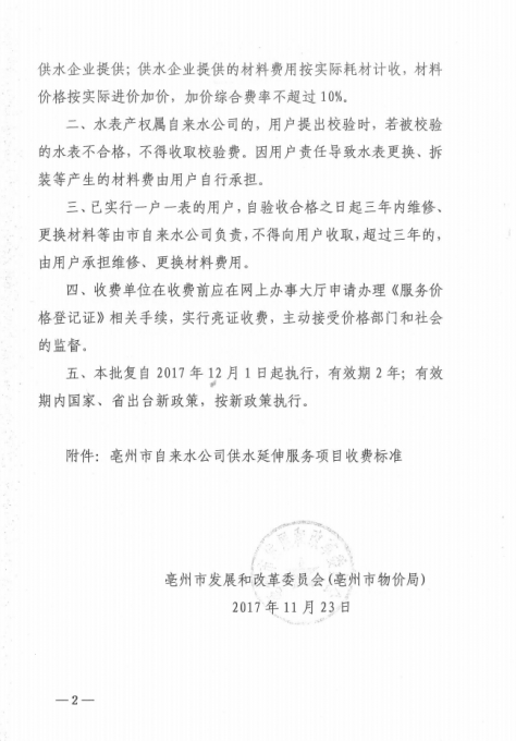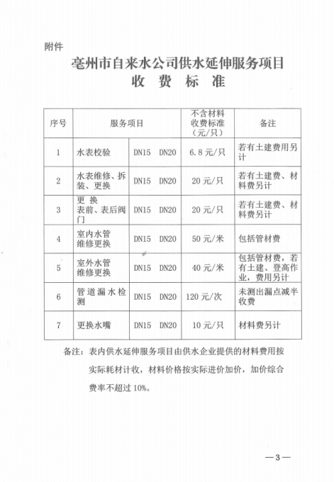 关于PA视讯供水延伸服务项目价格的